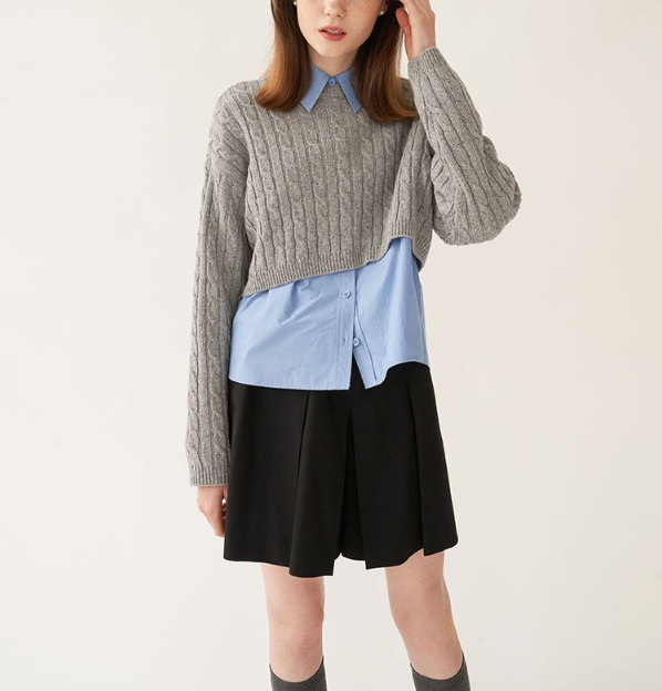 그레이 그레이 트위스트 케이블 니트 쇼트 니트