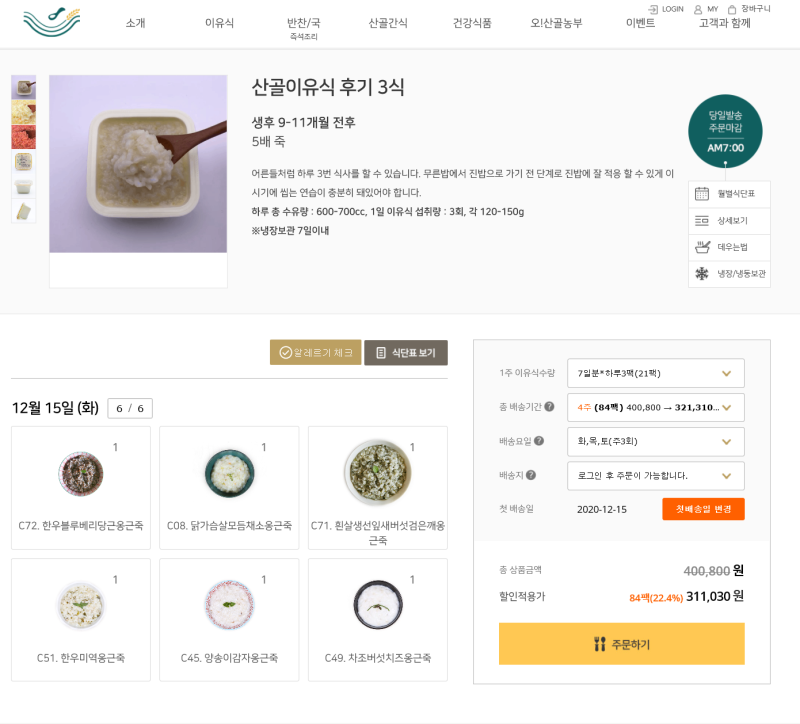 베베쿡산골이유식베네밀베이비본죽푸드케어팜투베이비